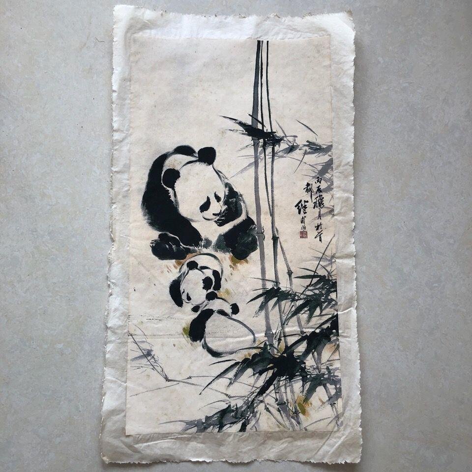 - 極美品 ! 中国美術 パンダ 画芯のみ 画仙紙 表装なし 未表装 画芯 鑑賞 巻物 中堂画 装飾 zh912