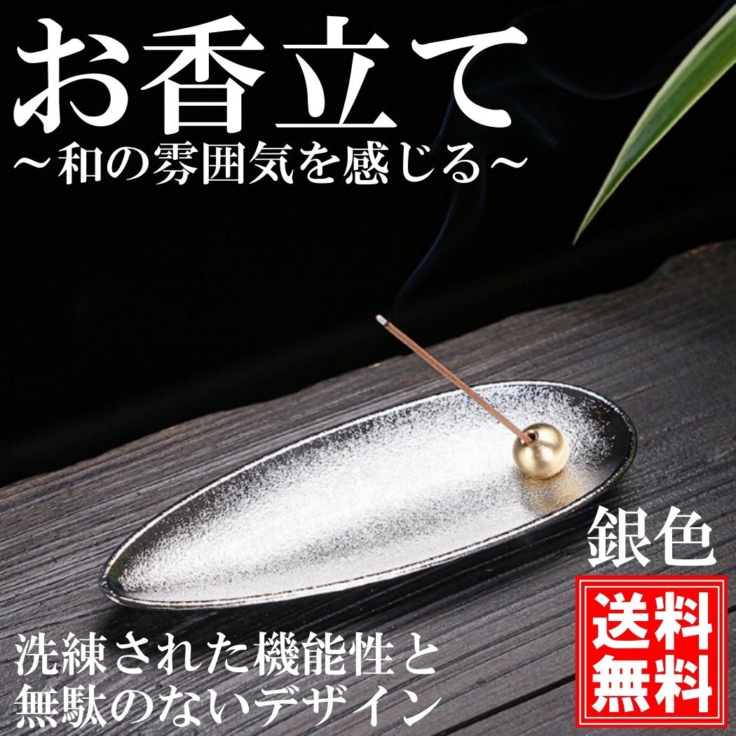 - 銀色 和モダン お香立て おしゃれ インセンスホルダー 線香立て 横置き 線香炉 お香立 お線香 仏壇用皿 書斎 瞑想 睡眠