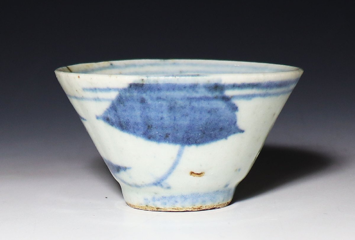 - 【桃】酒器ぐい呑み:清朝期染付何の図猪口