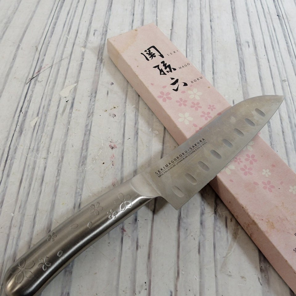 f002 Y6(60) 貝印 KAI 関孫六 桜 オールステンレス包丁II 076AB-2576 ディンプル 三徳包丁 桜模様 箱入り 庖丁 調理器具拍卖
