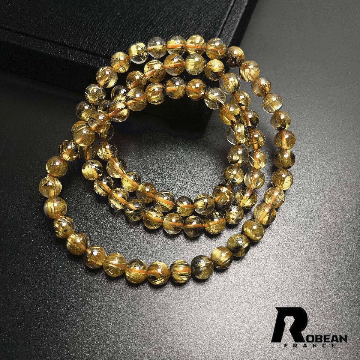 - 貴重 EU製 定価114万円★ROBEAN・太陽花タイチンルチル★黄金針水晶 金運 開運 ゴールド 3本巻きブレス パワーストーン 6.2-7.3mm K0527724