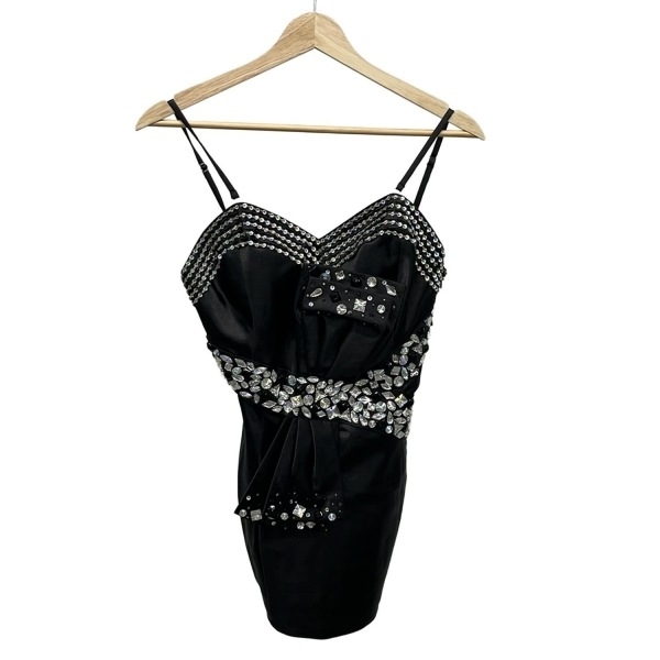 - スワローテイル Swallowtail ドレス サイズ9 M - 黒 レディース ノースリーブ/ミニ/スパンコール/ビーズ/ビジュー/リボン ワンピース