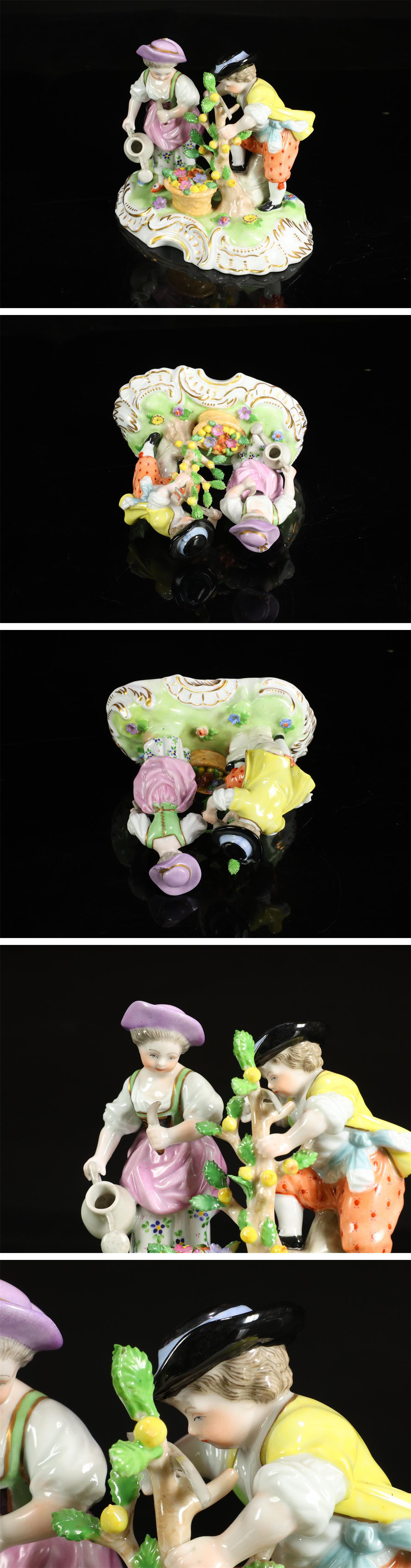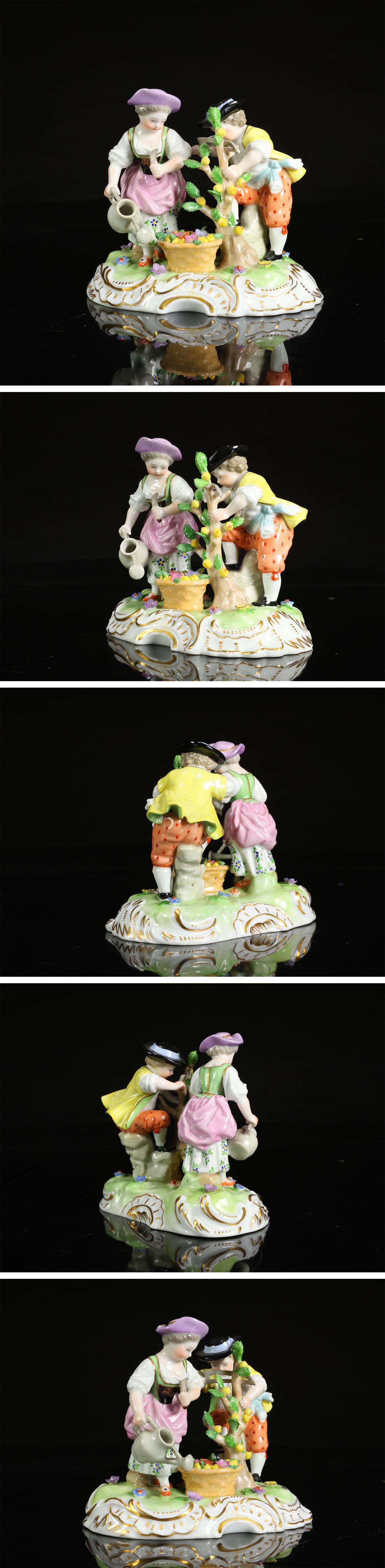 > 【吉】CM030 洋風インテリア小物 DRESDEN 【ドレスデン】 色絵磁器 フィギュリン 植木人物 置物/美品I!