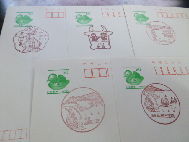 - 鴛鴦はがき 初日風景印 5枚 福岡 三奈木ほか