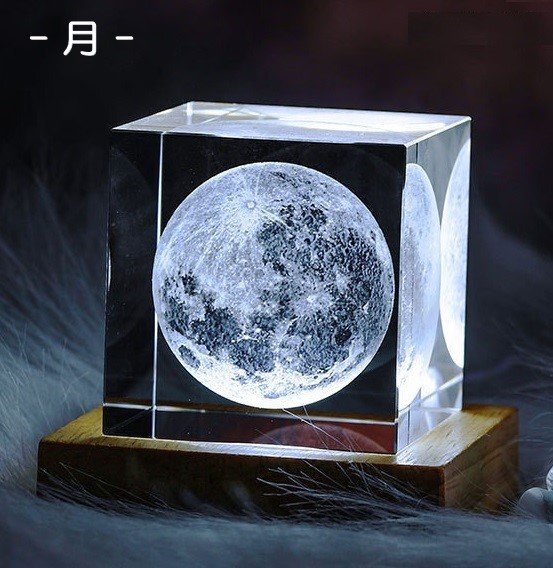 - オシャレな置き物 クリスタルライト 4cm 月 オブジェ 室内 雑貨 パターン 立方体 透明 上品 結婚記念 卒業祝い 子供