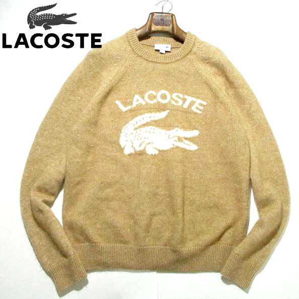 - 定価34100円▼ ラコステ クルーネックニット アルパカ セーター ビッグワニ デカワニ 5 XLサイズ LACOSTE ベージュ