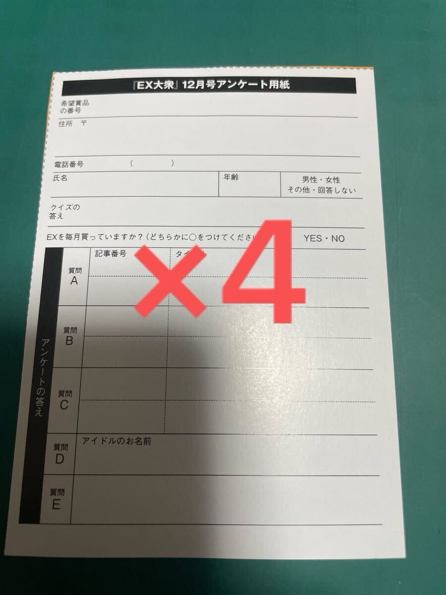 - EX大衆 2025年12月号 応募券 4枚セット 梅澤美波 五百城茉央 海邉朱莉