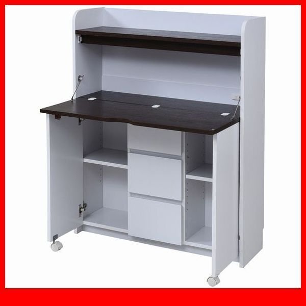 - 机★省スペースライティングデスク/お子様用にも 学習机/ラック 引き出し収納 フリースペース/コンセント付き/ホワイト ダークブラウン/a1