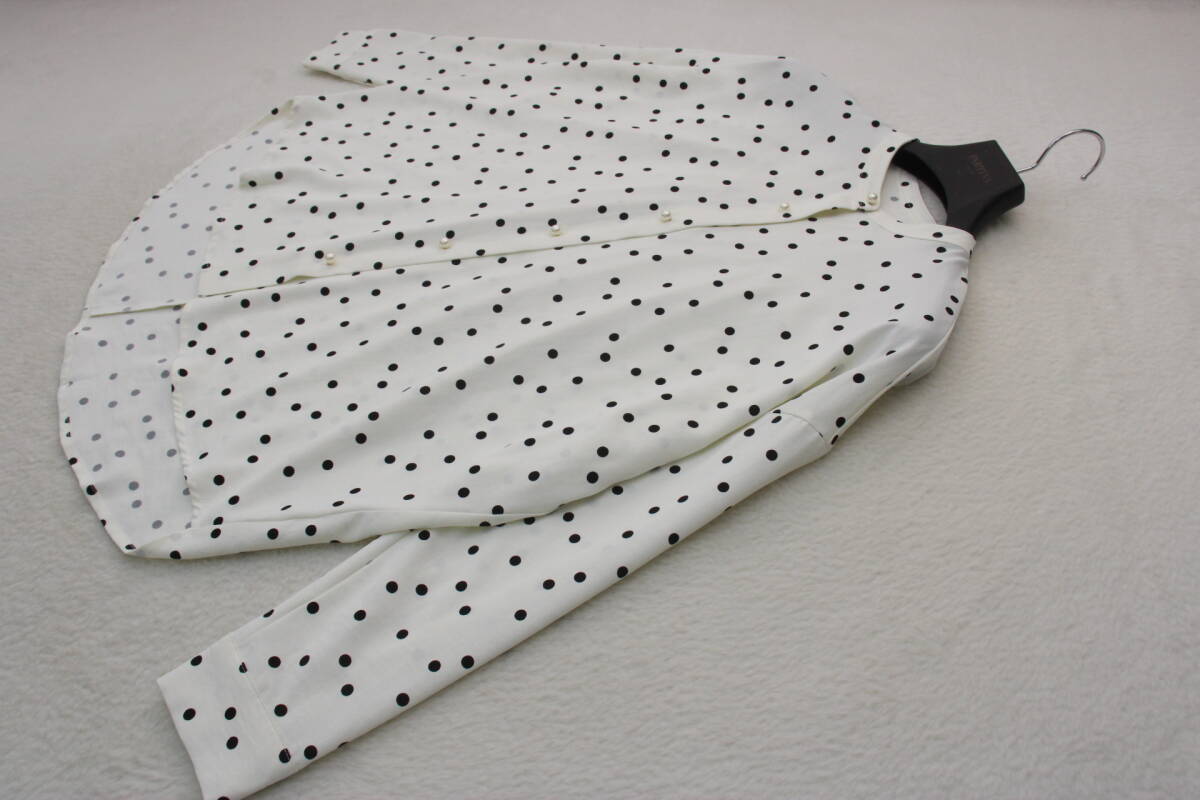 - 7028 新品 ドットノーカラーオーバーVギャザーブラウス