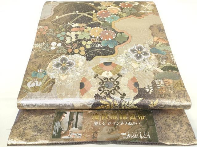 > 平和屋着物▼螺鈿匠 於利部寿名宝 六通柄袋帯 慶匠螺鈿 道長花文 金彩 証紙付き 正絹 逸品 DAAY9033az