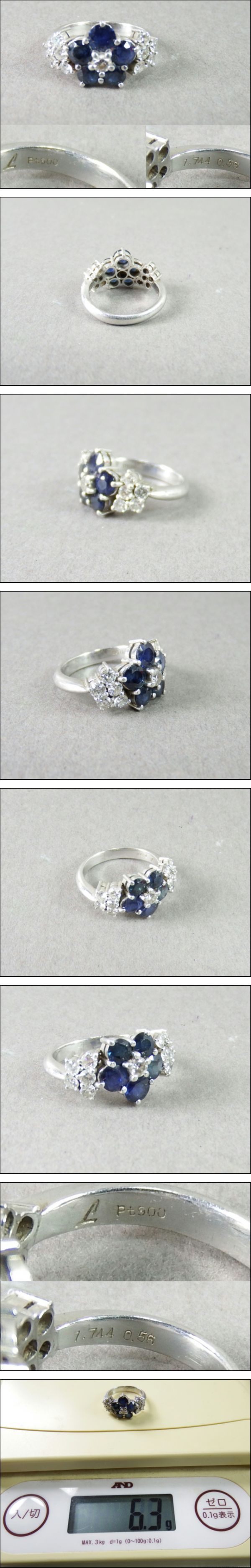 - ■■Pt900 プラチナ900 サファイア1.744 ダイヤ0.56 リング 指輪 刻印 総重量6.3g■■