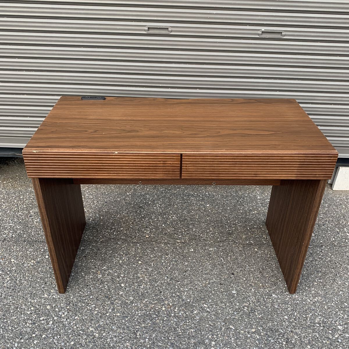 > ⑧【現地引き取り歓迎】ワークデスク 天然木 木製 木目 パソコンデスク ウォールナット調 2口コンセント付き 千葉県 つ