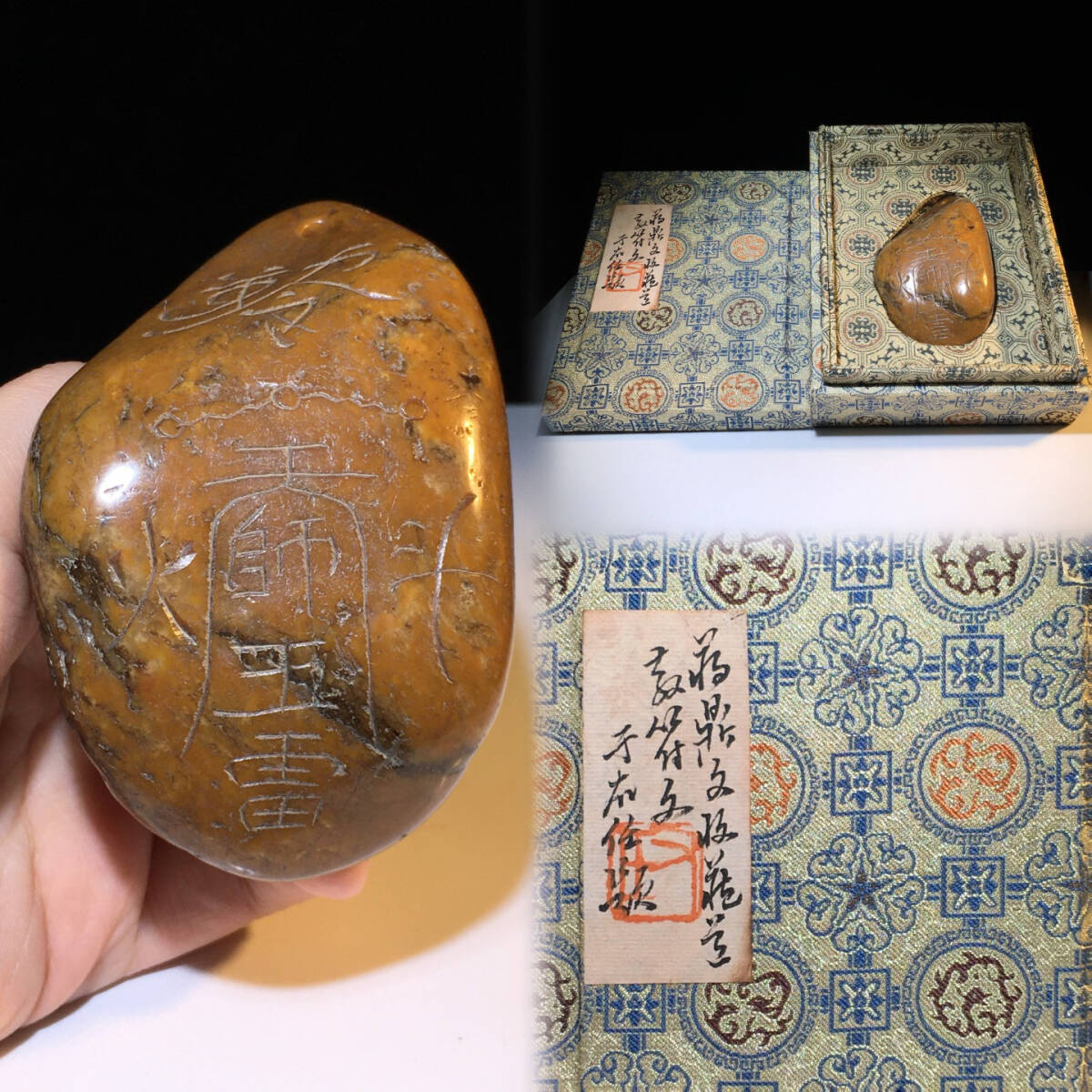 - 旧蔵 寿山石彫 田黄石 符文 挂件 古擺件 古置物 中国古玩 骨董品 時代物 稀少唐物
