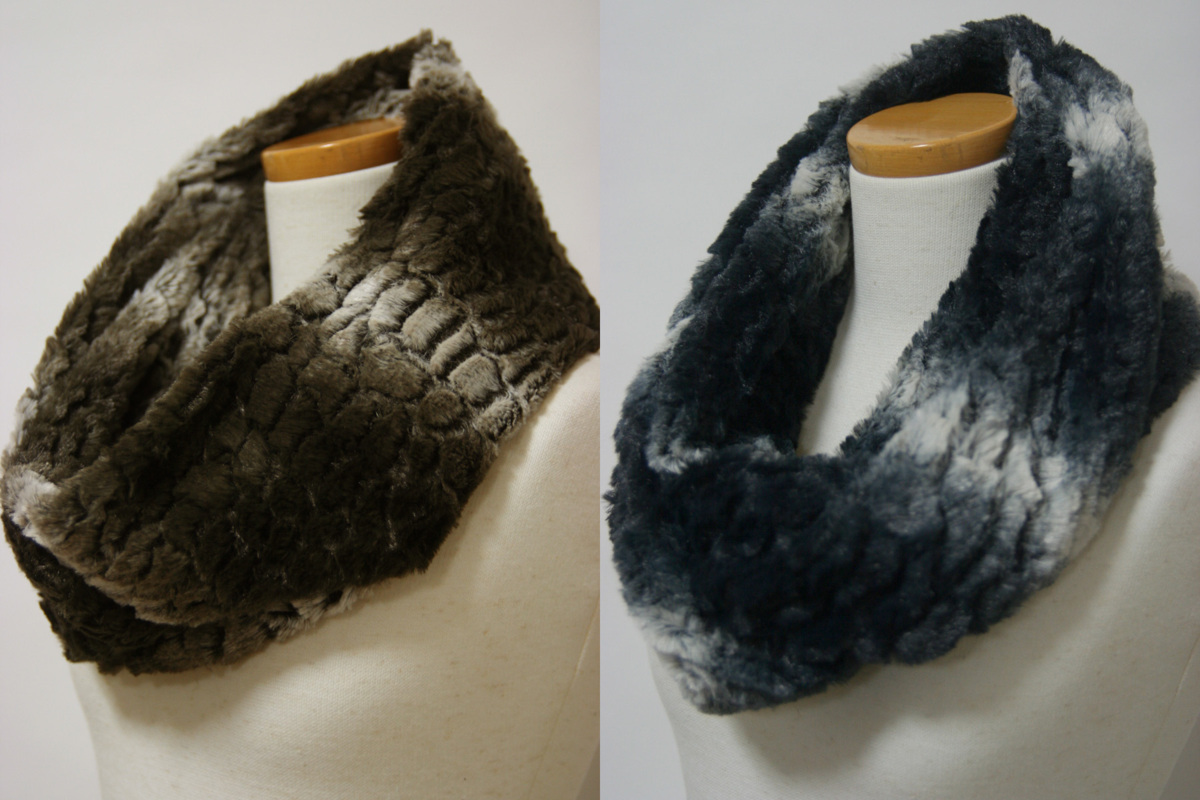 - 送料無料◆超お得◆2色組◆エコファー◆小顔効果◆二重巻き◆プレーンカラー◆グラデーションロングスヌード(モカ&ネイビー)3436