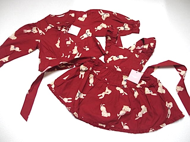 - ベビーピンクハウス チビーズ うさぎブラウス&エプロンスカートセット 赤 S 発売時定価¥28,300 タグ付き未着用