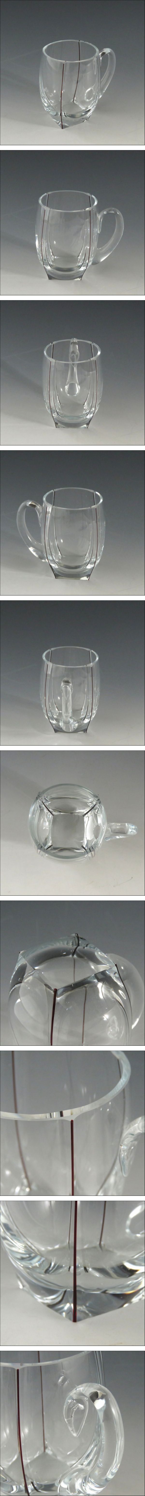 > ◆◇昭和切子 ハンドカット 赤線被せガラスマグカップ 1客 手付グラス レア物 1940年頃◇◆おしゃれ食器 昭和レトロ ビアマグ dby9589-y