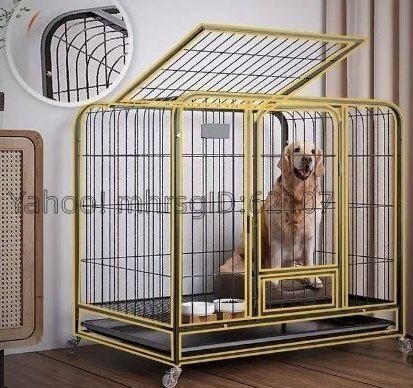 - 犬用ケージ角管ケージ大型犬用太めペットケージシャーシ付き金毛ラブラドール家庭用犬用大空間