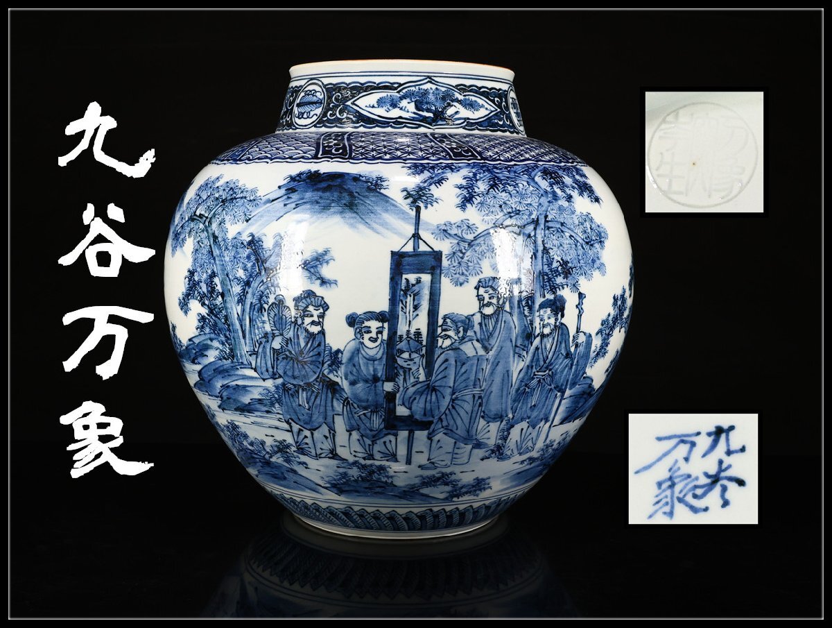 > 【吉】CN604 【九谷万象】 九谷焼 染付人物風景図 大花瓶 高36.5cm 径36㎝/美品!