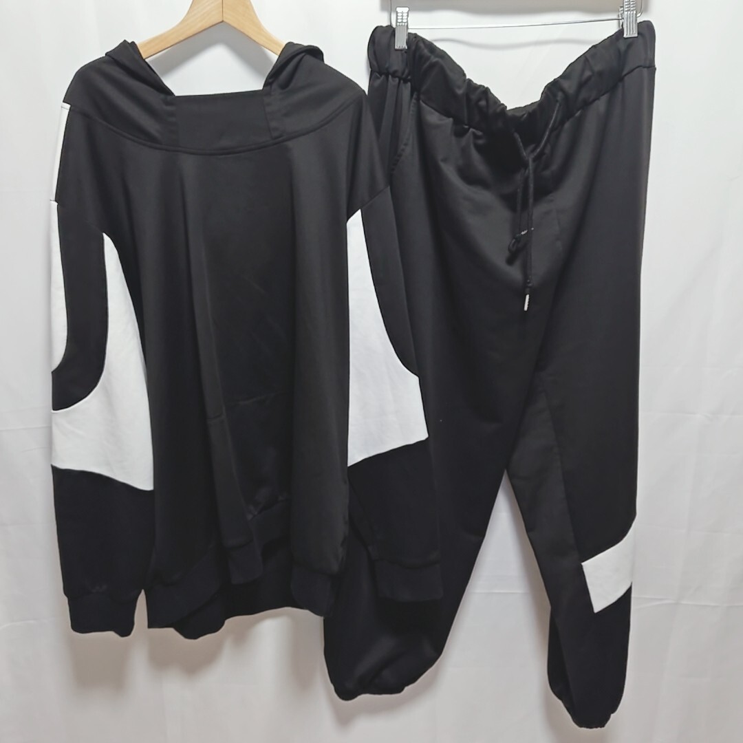 - メンズコントラストカラーパターンプリントフード付きスウェットシャツパンツセット 3XLサイズ
