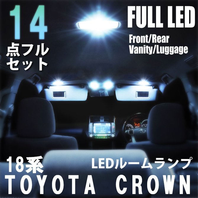- トヨタ クラウン 18系 LED ルームランプ 14点フルセット 車内灯 室内灯 車 ライト 内装 照明 ホワイト 白 送料無料