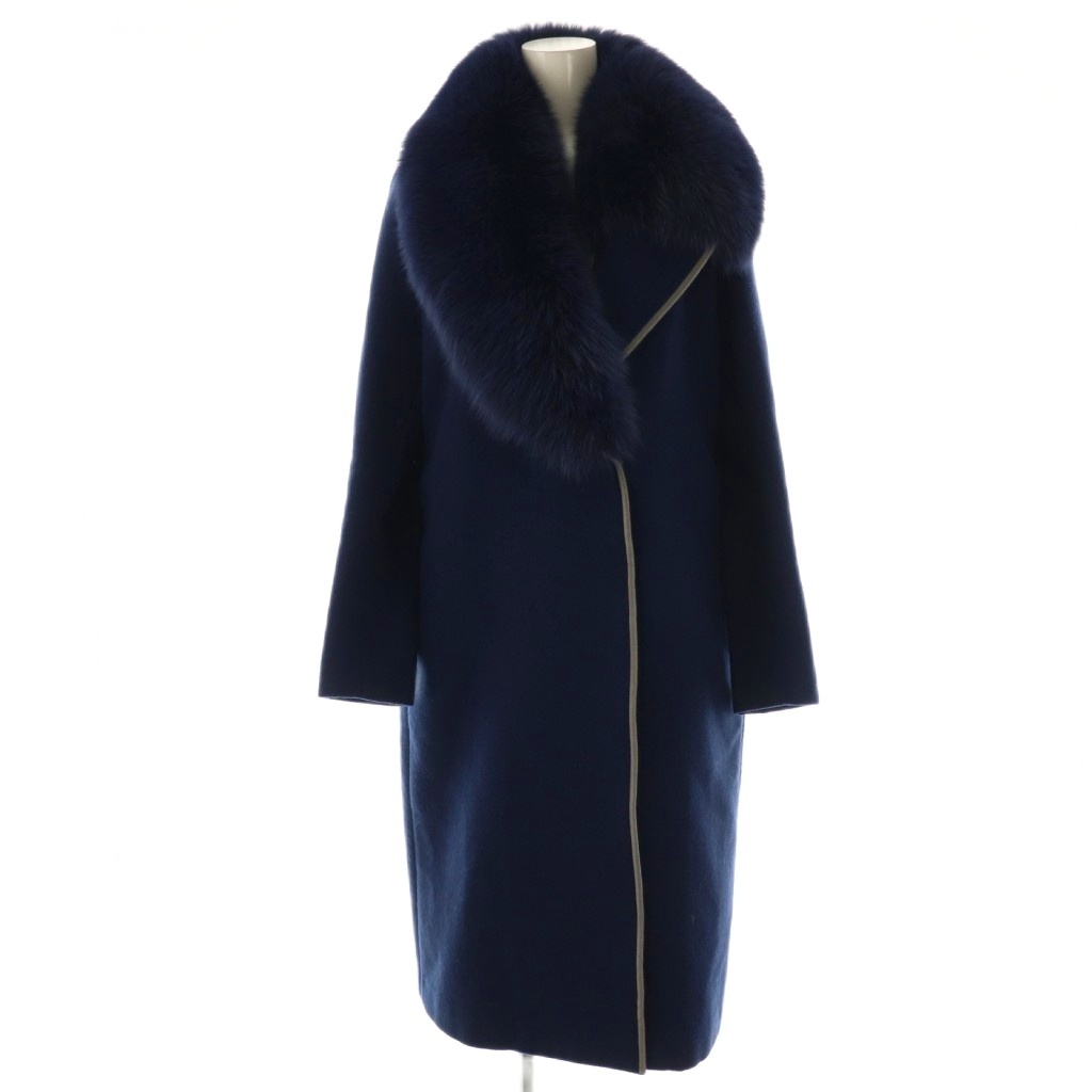 > フェンディ FENDI フォックスファーコート チェスター アウター ウール I38 紺 ネイビー /NR ■OS レディース