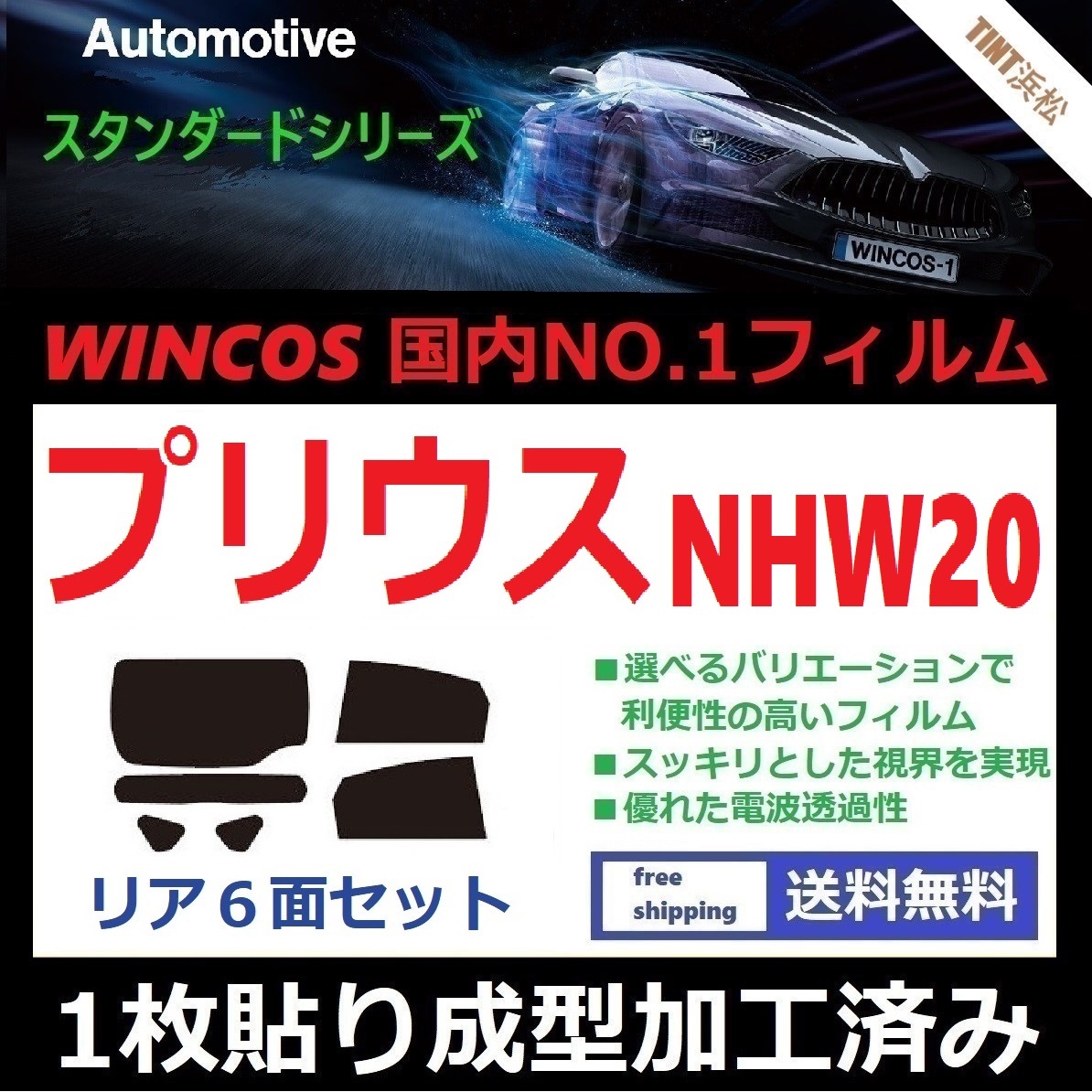 > ◆1枚貼り成型加工済みフィルム◆ プリウス NHW20 【WINCOS】 夏の暑い日差しの要因となる近赤外線を62%カット! ドライ成型