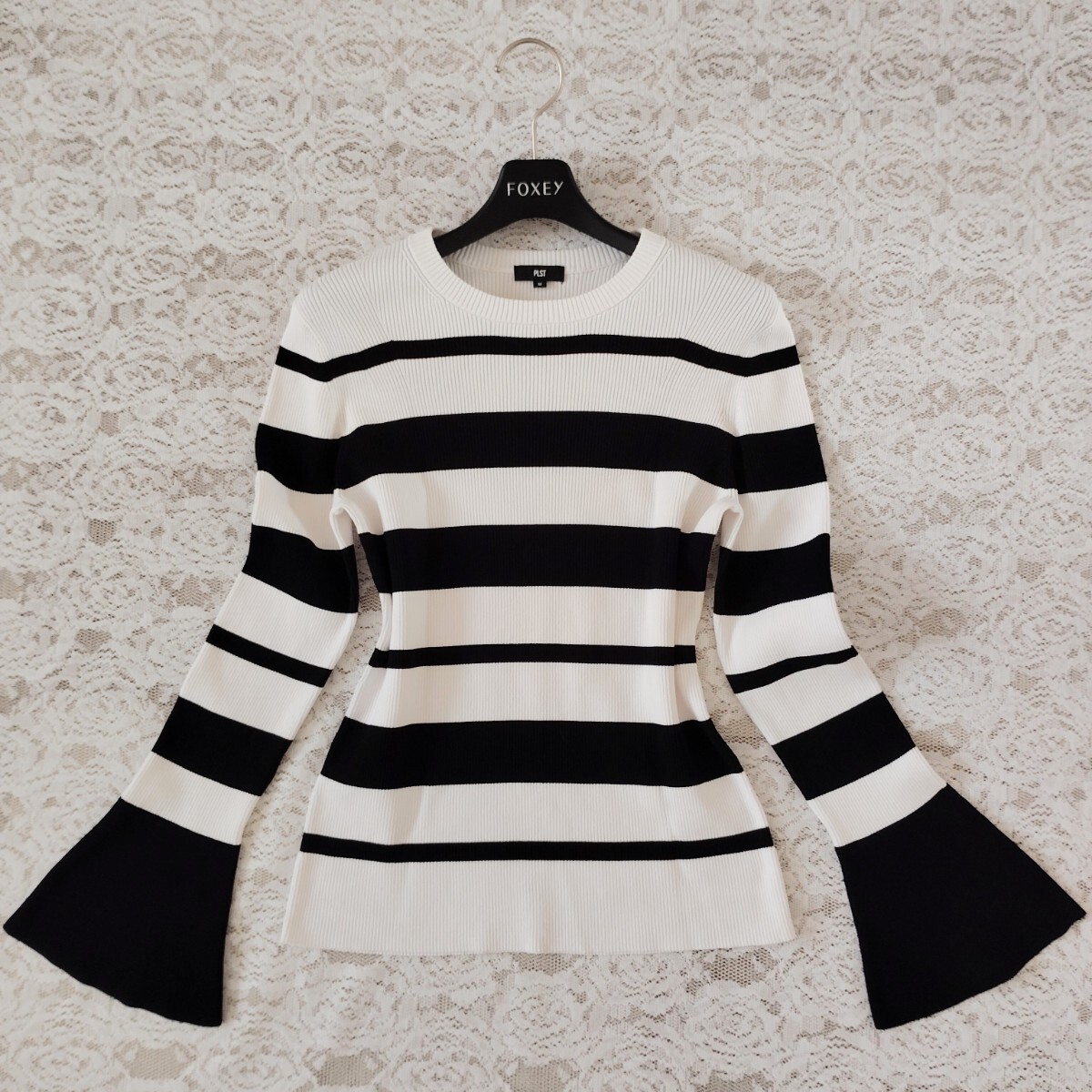 - 美品★PLST*カットソー 伸縮性素材 長袖 ペプラム袖 ボーダー 紺色×白 プラステ M*