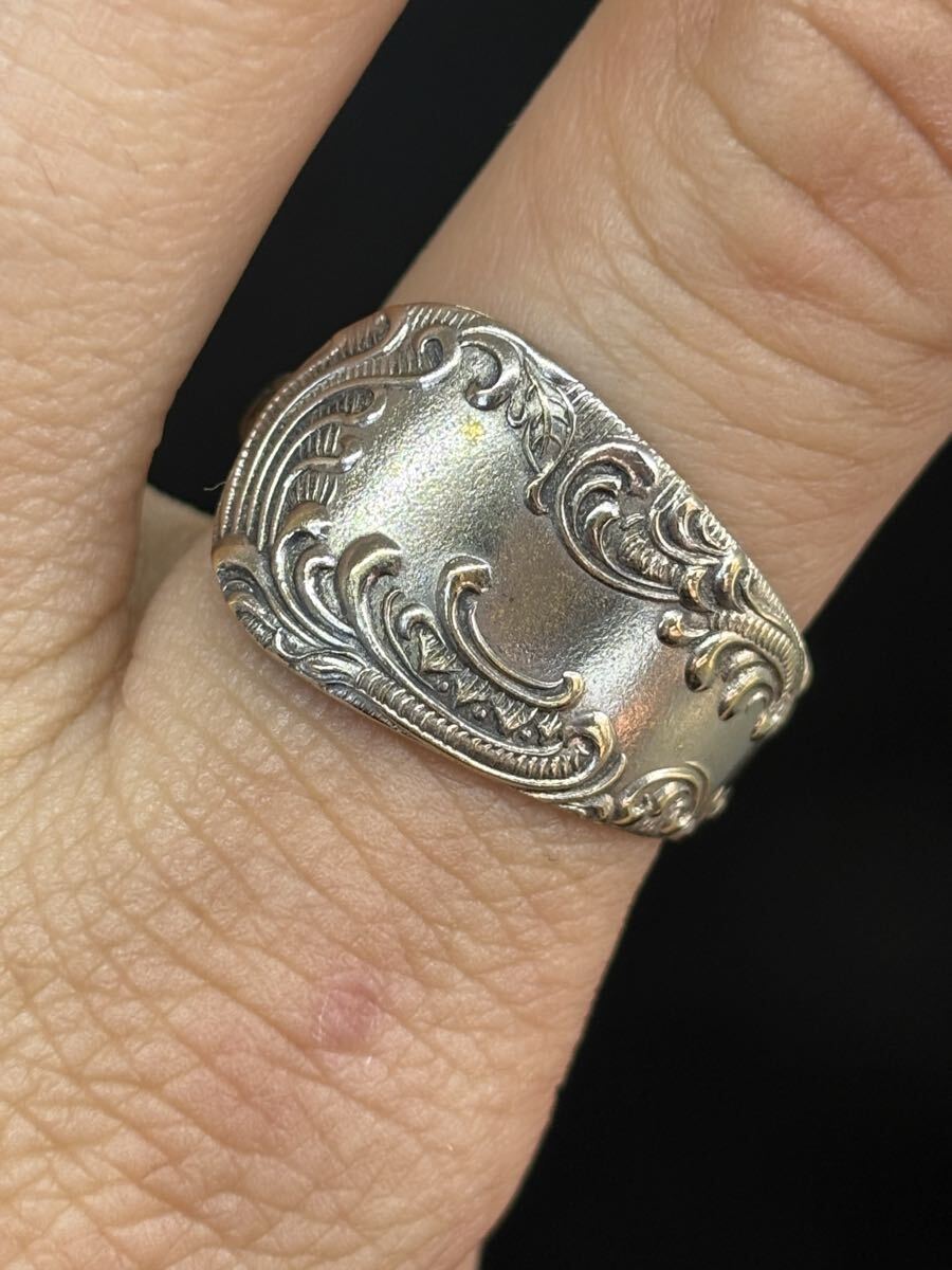 - ヴィンテージ リング スプーンリング 19号 調節可 60s アメリカ 民族 総柄 6105