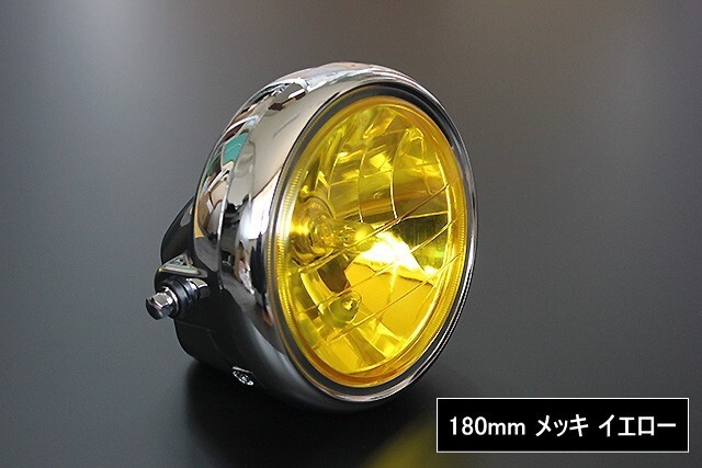 > ガラス 180mm ヘッドライト イエローレンズ メッキ 新品 汎用