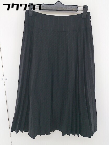 - ◇ Lois CRAYON ロイスクレヨン サイドジップ ストライプ 膝下丈 ギャザー スカート サイズM ブラック グレー レディース