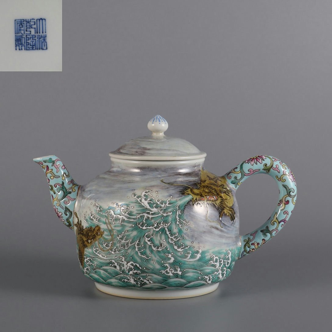 - ▼渡鶴羽▼A0718清乾隆 粉彩蒼龍教子茶壺・古陶磁器 ・珍品旧蔵・古賞物・時代物