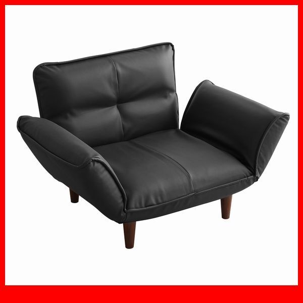 > ソファ★1人掛ソファ PVCレザー 背もたれ 肘掛け 14段階リクライニング/フロアソファ カウチソファに/日本製 完成品/ブラック/a1