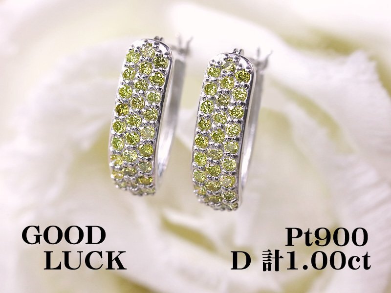 - 【新品・未使用】1円~最落無 天然トリートイエローダイヤモンド 計1.00ct,ミニ鑑別付,プラチナ フープデザイン ダイヤ ピアス (遮断式)