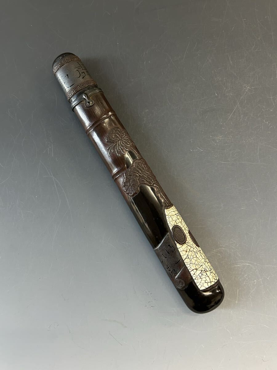 - 煙管筒 煙草入れ 秀山 在銘 キセル筒