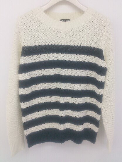 > ◇ INDIVI インディヴィ ボーダー 長袖 ニット セーター サイズ 38 オフホワイト ネイビー レディース P