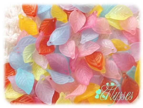 - ■ビーズ■と■18mmアクリルフロストリーフ型MIX50個★プラ★説明文・自己紹介は必ずお読みください