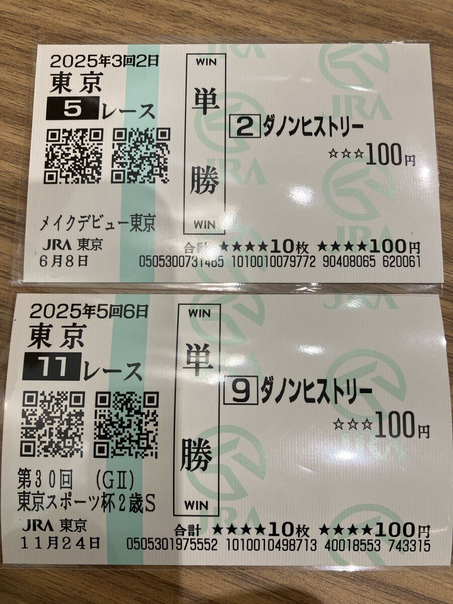 - ダノンヒストリー メイクデビュー現地的中単勝馬券&東京スポーツ杯2歳S 単勝(不的中)東京競馬場 現地