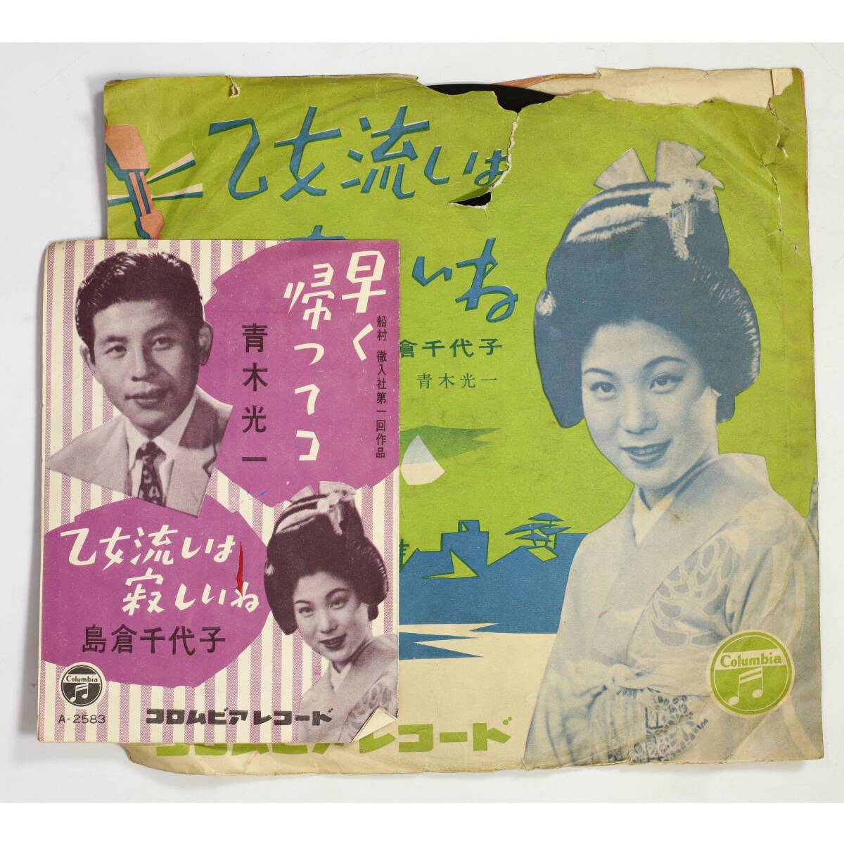 - 【10吋SP盤】青木光一,島倉千代子/早く帰ってコ,乙女流しは寂しいね(並品,歌詞・スリーヴ付,78rpm)