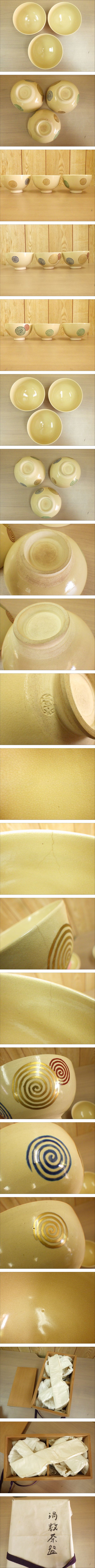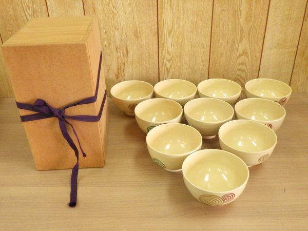 > コレクター所蔵品●仁清写 仁清渦文 色絵渦文 渦 共箱付 抹茶碗 在銘 10点揃 10客セット 京焼 清水焼 茶道具 茶器 作家物 お茶事 美品