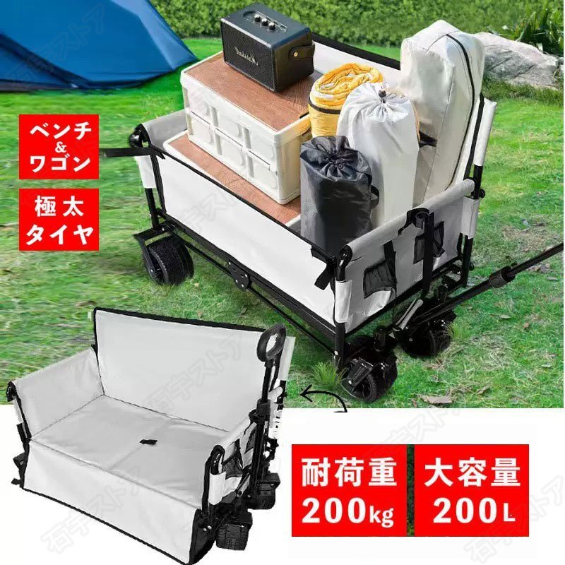 - キャリーワゴン アウトドアワゴン ストローラーワゴン 大容量 耐荷重 子供が乗れる キャリーカート ベンチ アウトドア zchw0163.bk