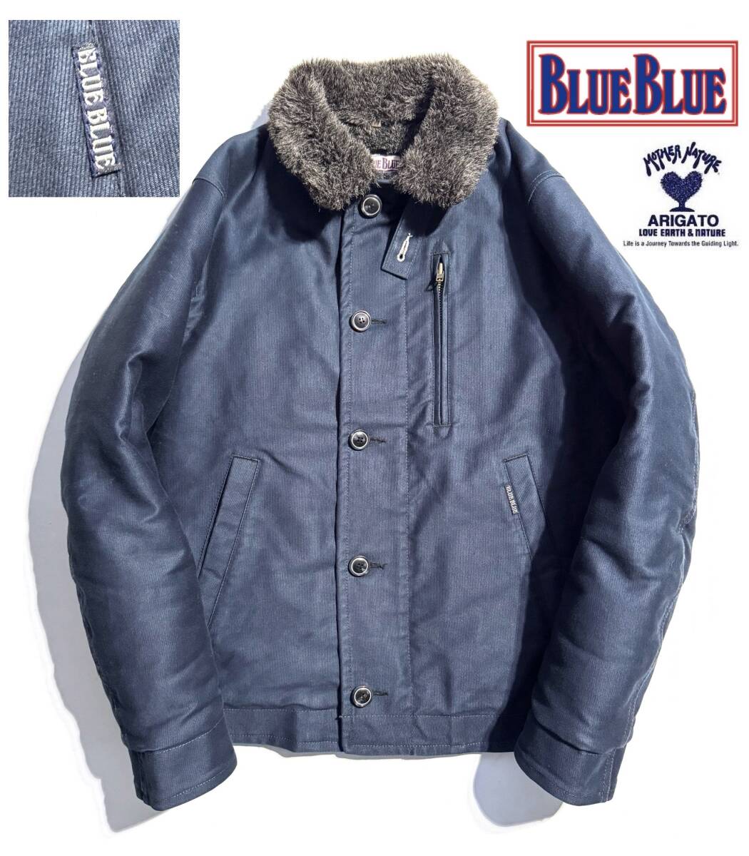 - 美品【定価5万超】BLUE BLUE ブルーブルー N-1 デッキジャケット L メンズ ハリラン ジャーマンクロス【不朽の名作】裏ファー ロゴ 日本製