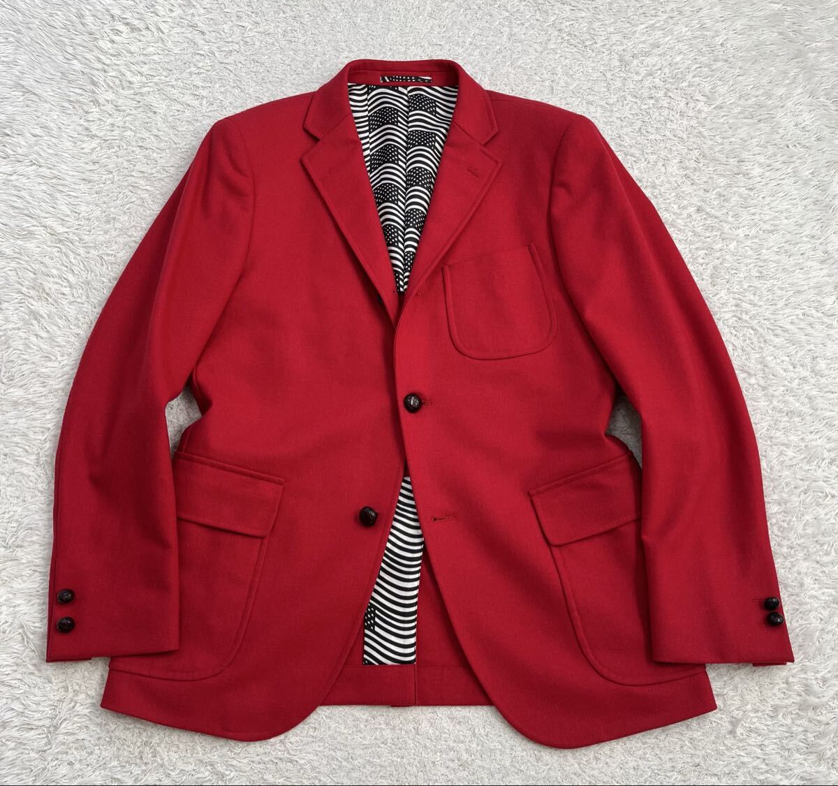 > J.PRESS RED LABEL フランネル 起毛 ウール混 段返り3B ブレザー ジャケット Lサイズ 赤 くるみボタン 星条旗柄 Jプレス 日本製 秋冬
