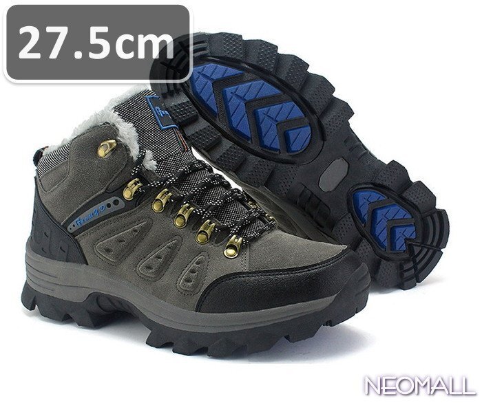> メンズ トレッキングシューズ グレー 27.5cm【861】ハイカット ハイキングシューズ 中綿 防滑 耐磨耗 衝撃吸収 レディース 男女兼用
