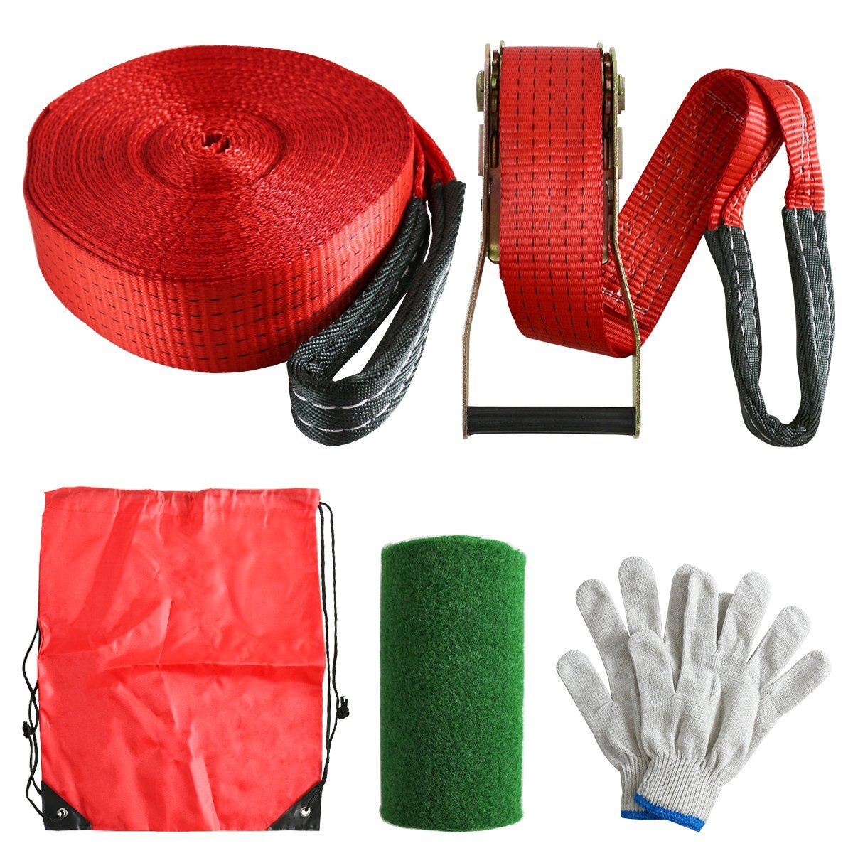 - [ツリーウェア付] スラックライン Slackline バランス感覚 体幹強化 筋トレ 筋肉 バランスウォーカー 綱渡りスポーツ 赤