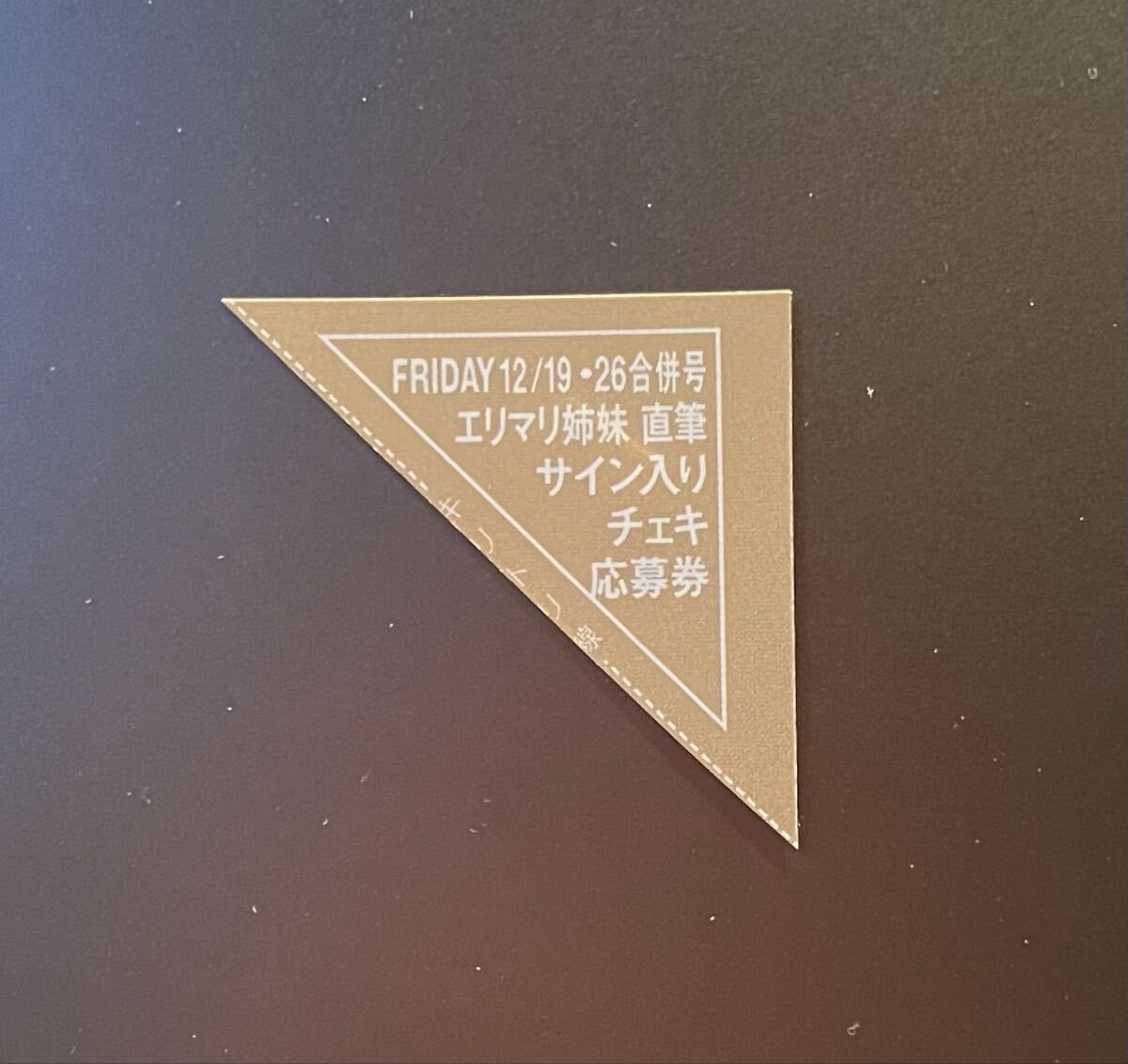 - ☆FRIDAY 12/19・12/26号(最新号)エリマリ姉妹 直筆サイン入りチェキ応募券☆