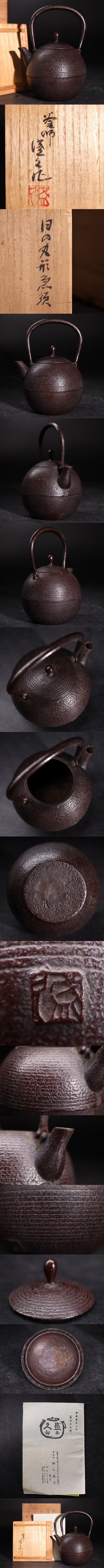 > 南部鉄器 釜師 鈴木盛久 作 小型 鉄瓶 「 日の丸形 急須 」 栞 共箱付 容量約350ml / 湯沸かし 煎茶道具 .G3510