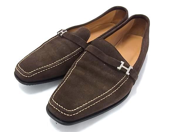 - 1円 ■極美品■ HERMES エルメス ジョヴァンニ モカシン スエード ローファー 表記サイズ 37 1/2 (約24.5cm) 靴 メンズ ブラウン系 HA0376