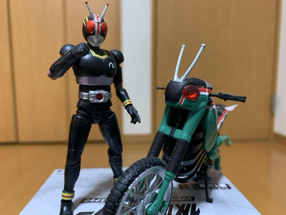 > バンダイ 食玩 掌動(SHODO) 仮面ライダーブラック&バトルホッパー 組立て済ジャンク現状品 予備手首パーツなし