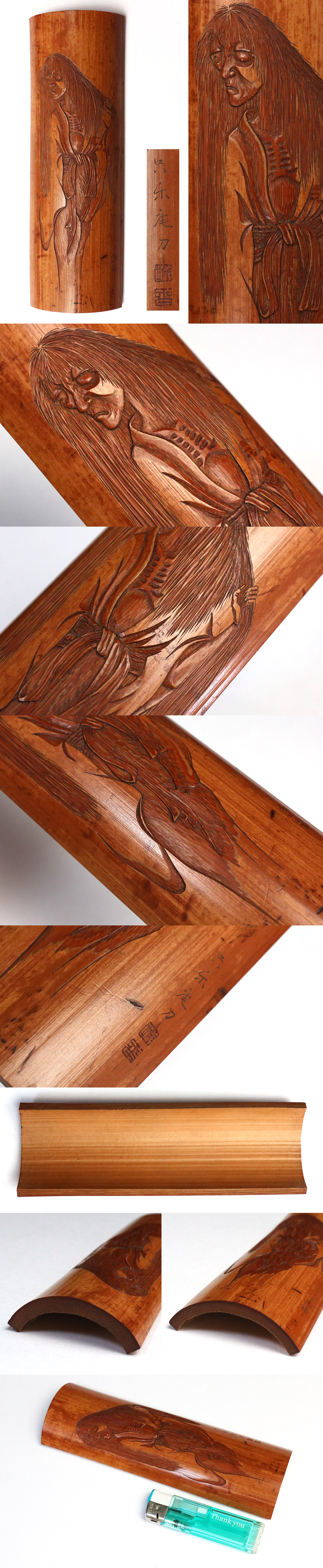 - 【takekore】在銘 竹製 幽霊彫 茶合 茶量 w23 煎茶器