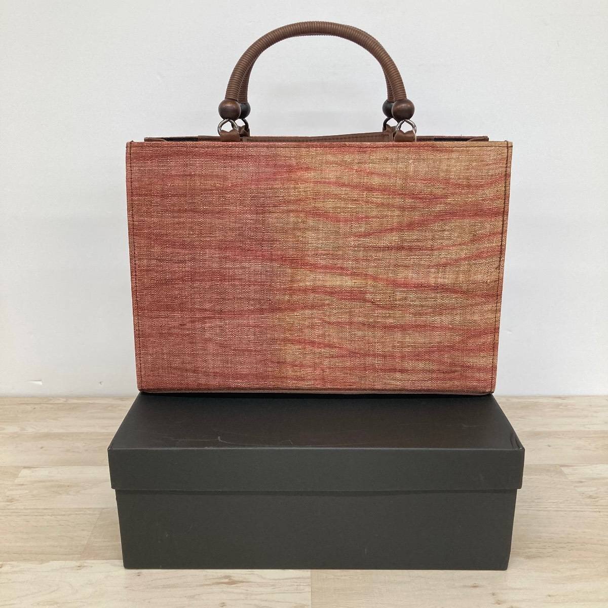 - 美品 和装バッグ/ハンドバッグ 和装小物 茶/赤系 織地 箱付き 着物/和装用 カバン[OQ02386]